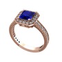Lab safir ve pırlanta 925 ayar rose altın kaplama gümüş yüzük (0.484 karat)
