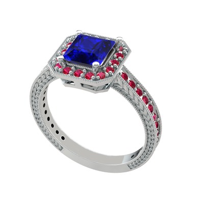 Lab safir ve rodolit garnet 8 ayar beyaz altın yüzük