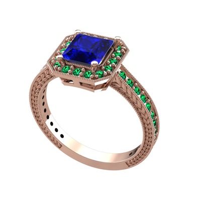 Lab safir ve yeşil kuvars 14 ayar rose altın yüzük