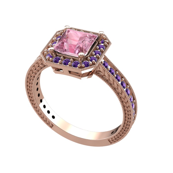Pembe kuvars ve ametist 8 ayar rose altın yüzük