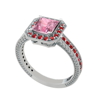 Pembe kuvars ve garnet 18 ayar beyaz altın yüzük