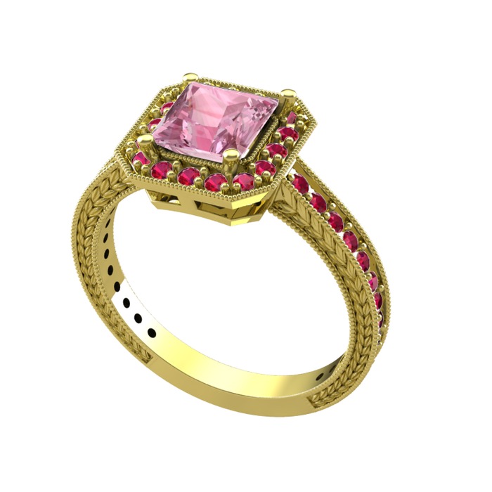 Pembe kuvars ve rodolit garnet 14 ayar altın yüzük