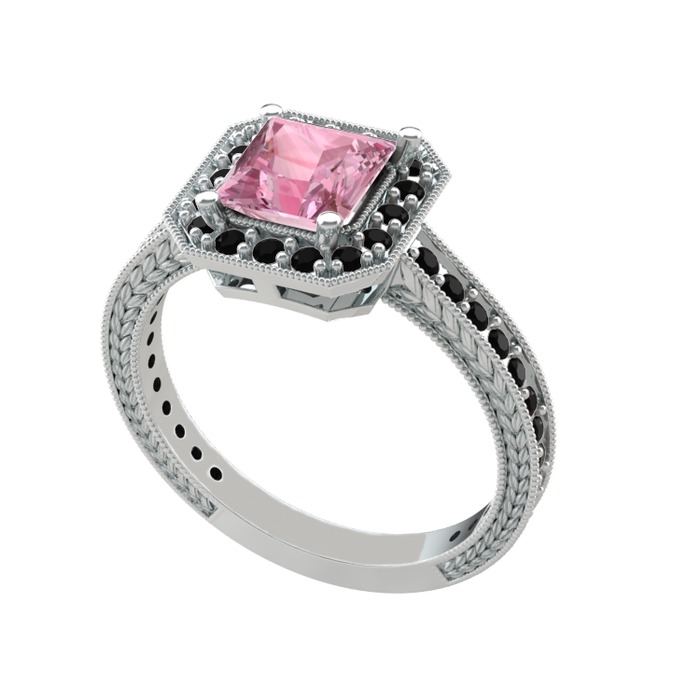 Pembe kuvars ve siyah zirkon 925 ayar gümüş yüzük