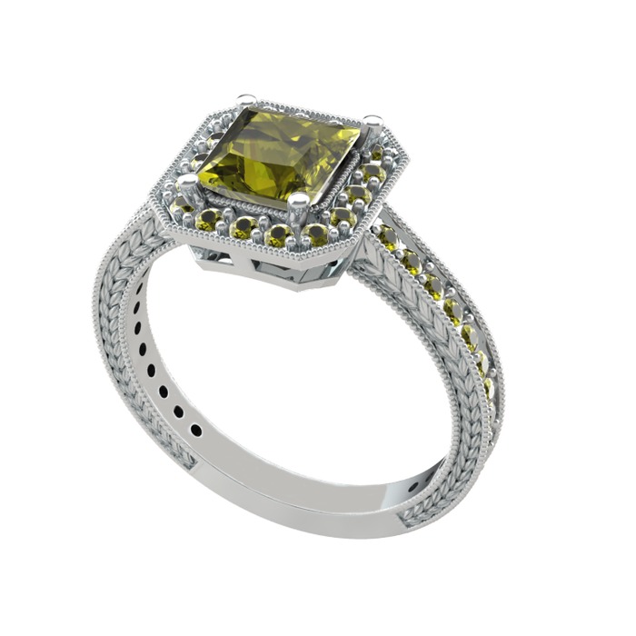 Peridot 18 ayar beyaz altın yüzük