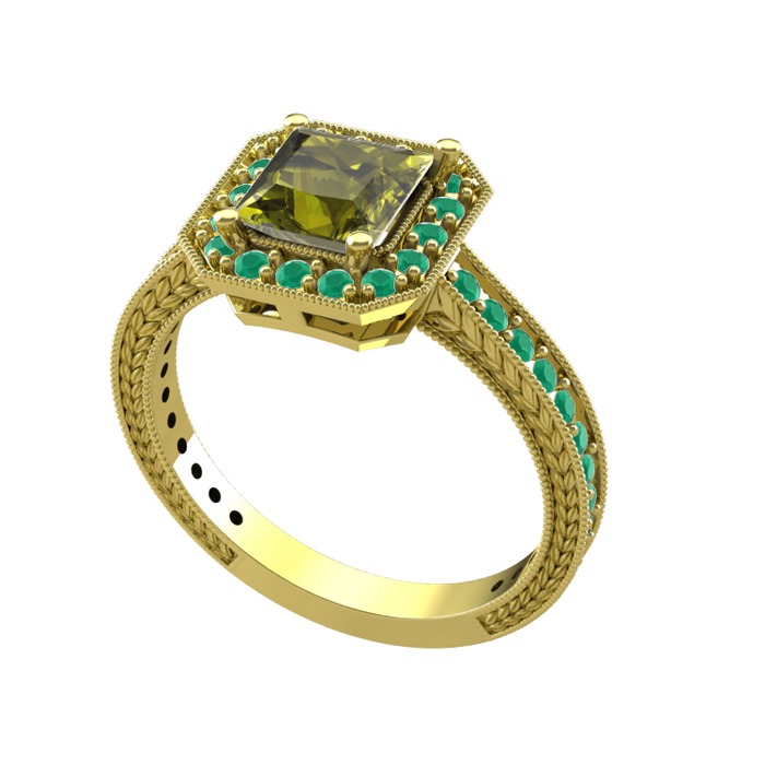 Peridot ve kök zümrüt 18 ayar altın yüzük