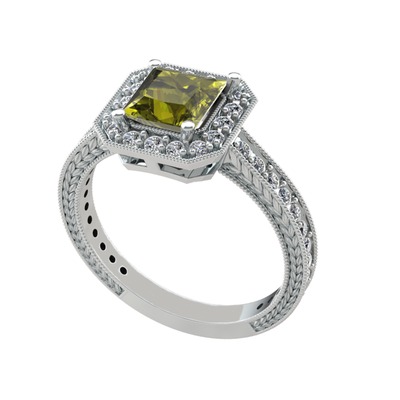 Peridot ve pırlanta 14 ayar beyaz altın yüzük (0.484 karat)