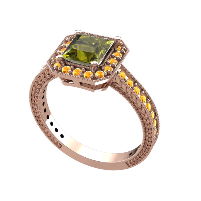 Peridot ve sitrin 14 ayar rose altın yüzük