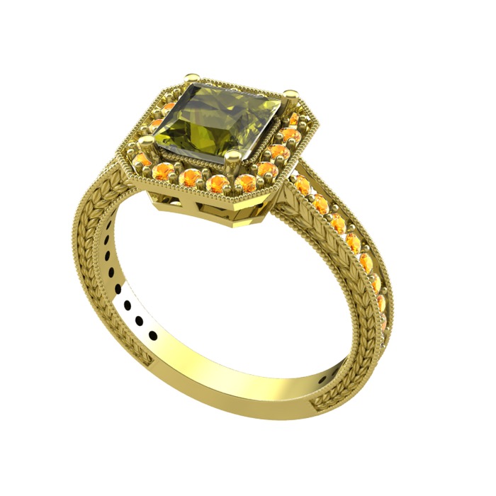 Peridot ve sitrin 925 ayar altın kaplama gümüş yüzük