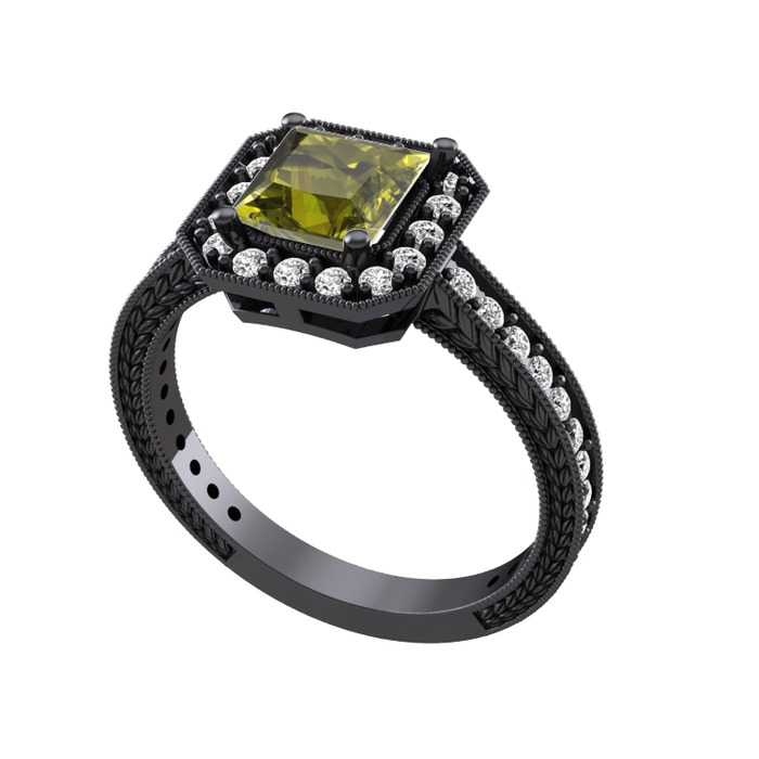 Peridot ve swarovski 925 ayar siyah rodyum kaplama gümüş yüzük