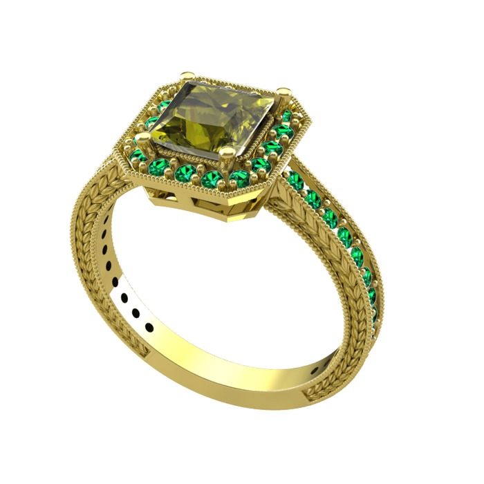Peridot ve yeşil kuvars 14 ayar altın yüzük