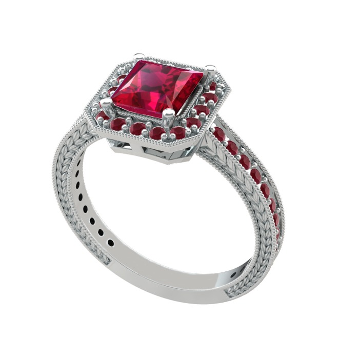 Rodolit garnet ve kök yakut 8 ayar beyaz altın yüzük