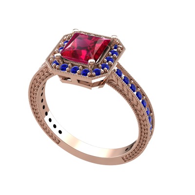 Rodolit garnet ve lab safir 925 ayar rose altın kaplama gümüş yüzük