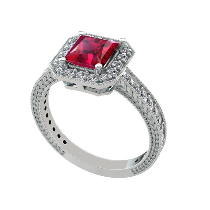 Rodolit garnet ve pırlanta 925 ayar gümüş yüzük (0.484 karat)