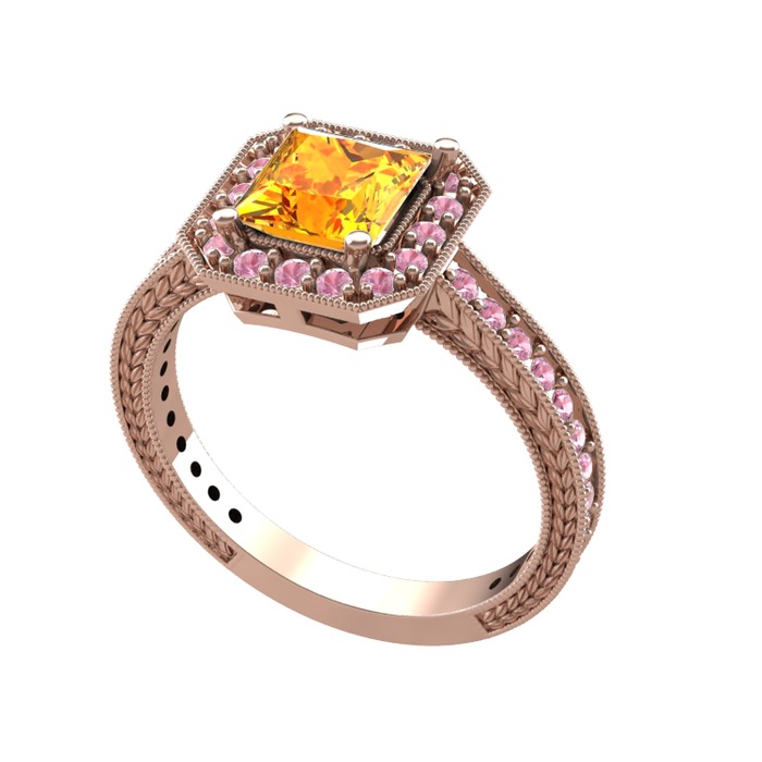 Sitrin ve pembe kuvars 14 ayar rose altın yüzük