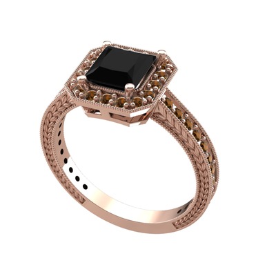 Siyah zirkon ve dumanlı kuvars 14 ayar rose altın yüzük