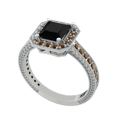 Siyah zirkon ve dumanlı kuvars 8 ayar beyaz altın yüzük