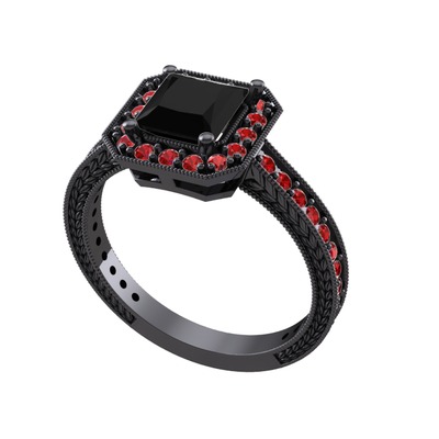 Siyah zirkon ve garnet 925 ayar siyah rodyum kaplama gümüş yüzük