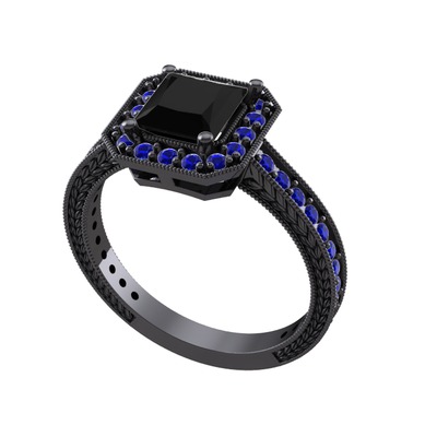 Siyah zirkon ve lab safir 925 ayar siyah rodyum kaplama gümüş yüzük