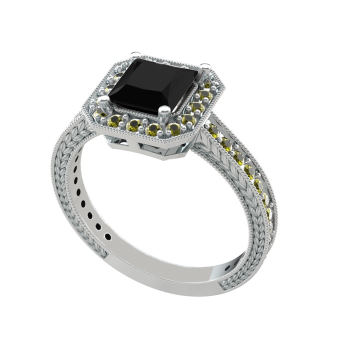 Siyah zirkon ve peridot 8 ayar beyaz altın yüzük