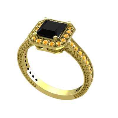 Siyah zirkon ve sitrin 18 ayar altın yüzük