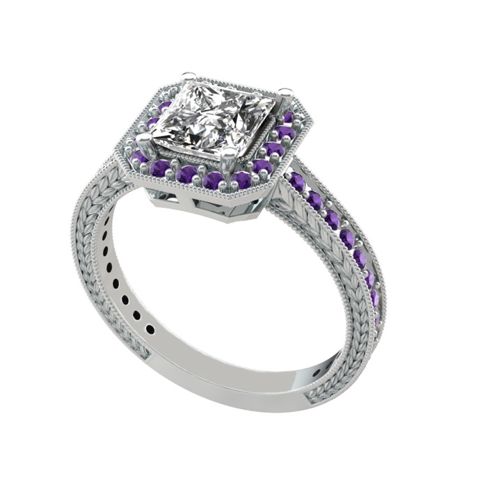 Swarovski ve ametist 14 ayar beyaz altın yüzük