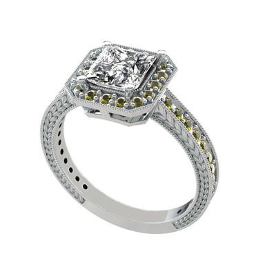 Swarovski ve peridot 8 ayar beyaz altın yüzük