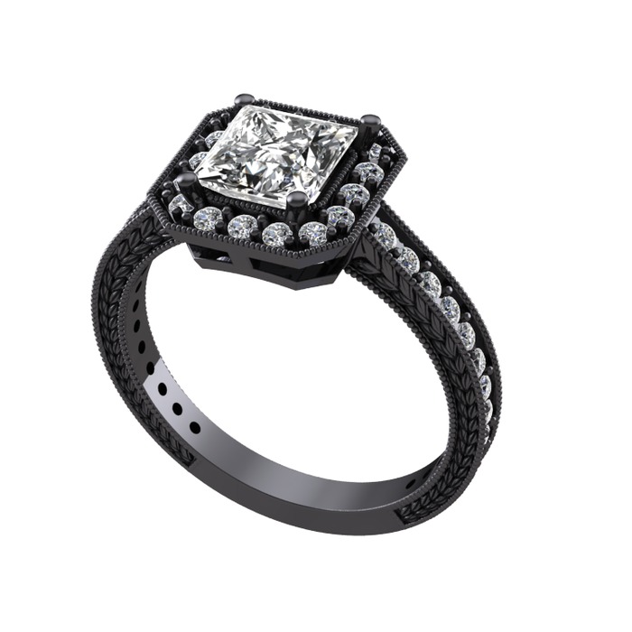 Swarovski ve pırlanta 925 ayar siyah rodyum kaplama gümüş yüzük (0.484 karat)