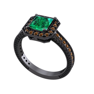 Yeşil kuvars ve dumanlı kuvars 925 ayar siyah rodyum kaplama gümüş yüzük