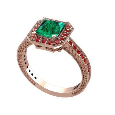 Yeşil kuvars ve garnet 925 ayar rose altın kaplama gümüş yüzük