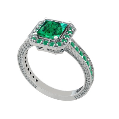 Yeşil kuvars ve kök zümrüt 925 ayar gümüş yüzük