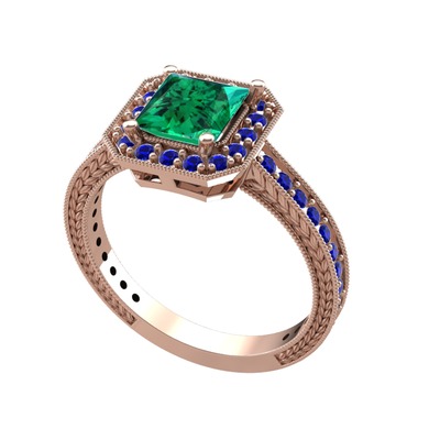 Yeşil kuvars ve lab safir 8 ayar rose altın yüzük