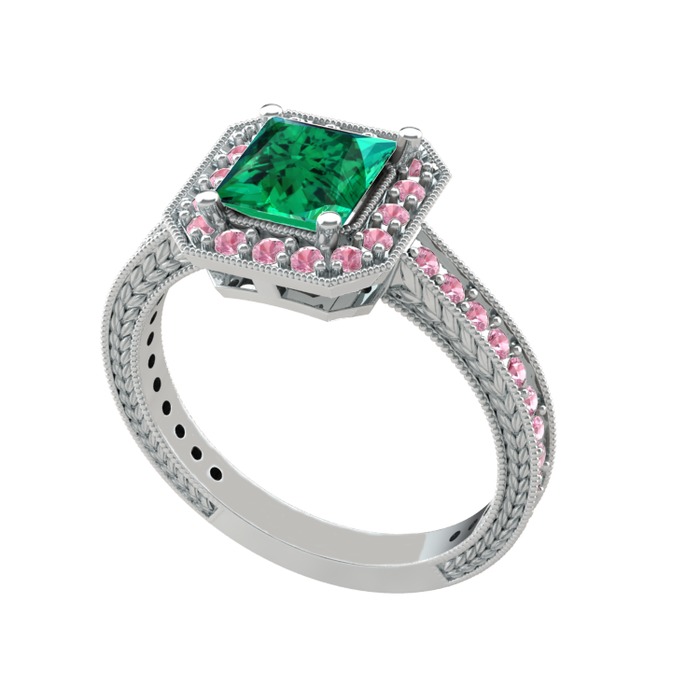 Yeşil kuvars ve pembe kuvars 14 ayar beyaz altın yüzük