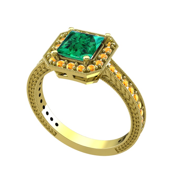 Yeşil kuvars ve sitrin 8 ayar altın yüzük