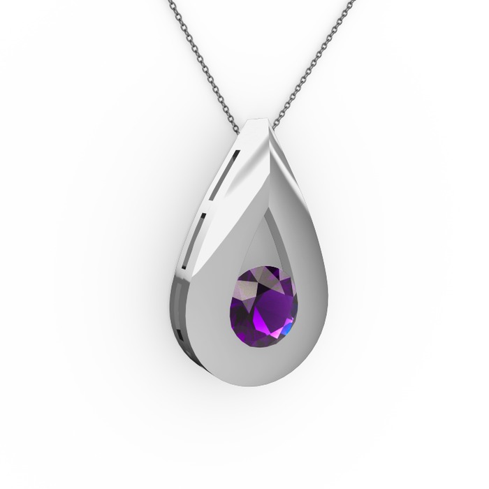 Ametist 14 ayar beyaz altın kolye (40 cm gümüş rolo zincir)