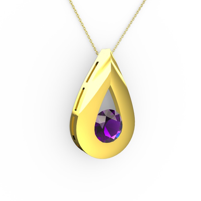 Ametist 8 ayar altın kolye (40 cm gümüş rolo zincir)