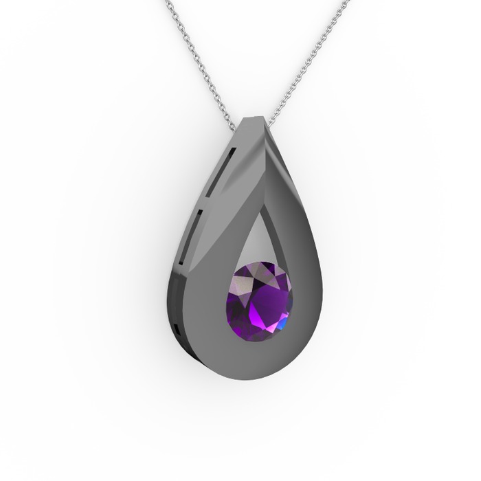 Ametist 925 ayar siyah rodyum kaplama gümüş kolye (40 cm beyaz altın rolo zincir)