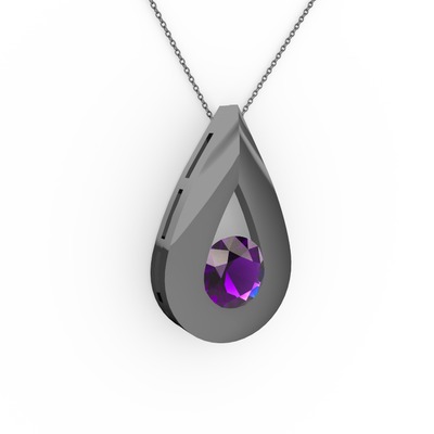 Ametist 925 ayar siyah rodyum kaplama gümüş kolye (40 cm gümüş rolo zincir)