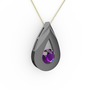Ametist 925 ayar siyah rodyum kaplama gümüş kolye (40 cm gümüş rolo zincir)