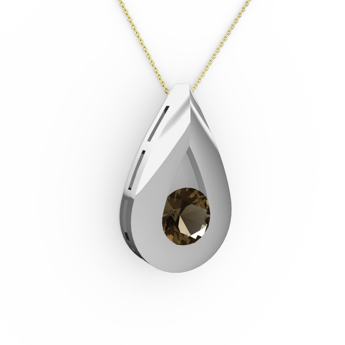 Dumanlı kuvars 14 ayar beyaz altın kolye (40 cm altın rolo zincir)