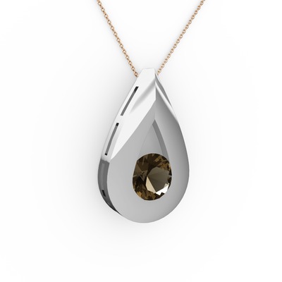 Dumanlı kuvars 14 ayar beyaz altın kolye (40 cm rose altın rolo zincir)