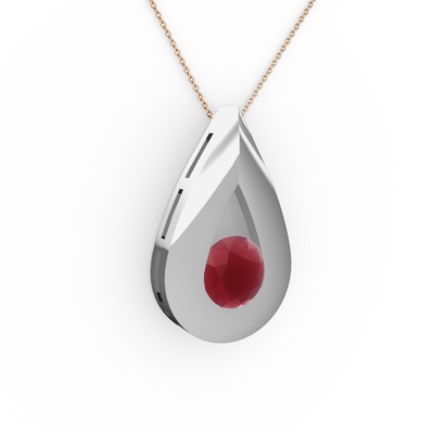 Kök yakut 8 ayar beyaz altın kolye (40 cm rose altın rolo zincir)