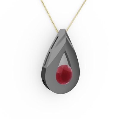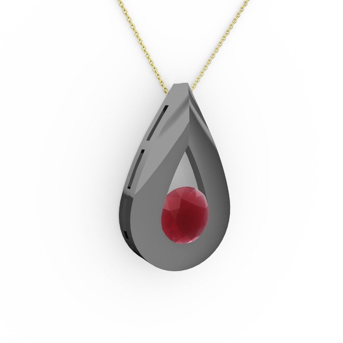 Kök yakut 925 ayar siyah rodyum kaplama gümüş kolye (40 cm gümüş rolo zincir)
