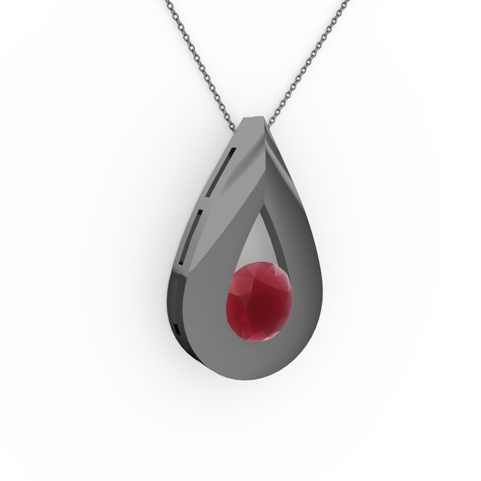 Kök yakut 925 ayar siyah rodyum kaplama gümüş kolye (40 cm gümüş rolo zincir)