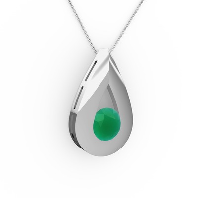 Kök zümrüt 18 ayar beyaz altın kolye (40 cm gümüş rolo zincir)