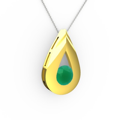 Kök zümrüt 925 ayar altın kaplama gümüş kolye (40 cm gümüş rolo zincir)