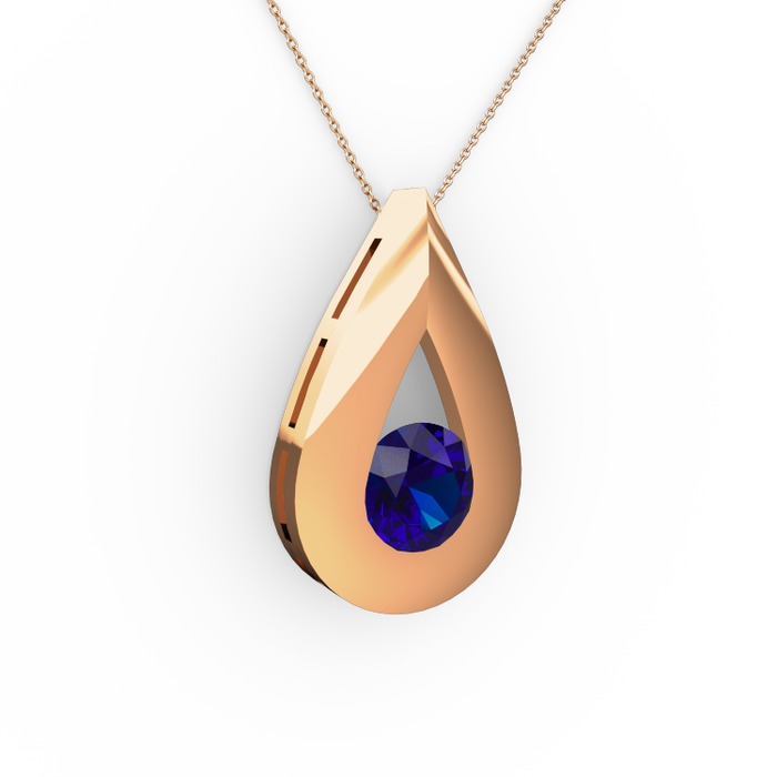 Lab safir 18 ayar rose altın kolye (40 cm rose altın rolo zincir)