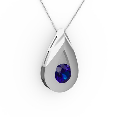Lab safir 925 ayar gümüş kolye (40 cm beyaz altın rolo zincir)