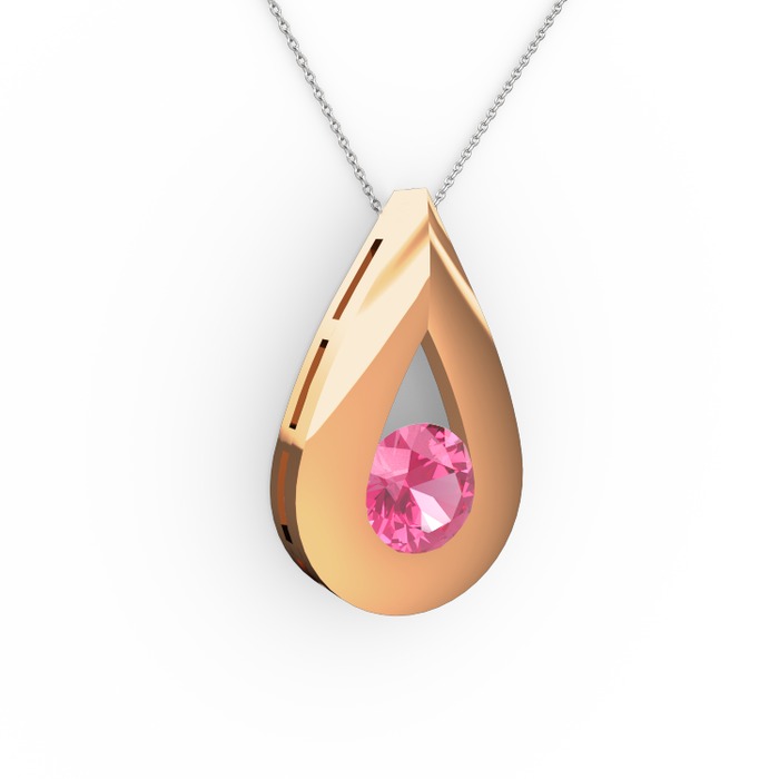 Pembe kuvars 925 ayar rose altın kaplama gümüş kolye (40 cm beyaz altın rolo zincir)