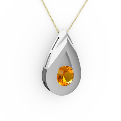 Sitrin 18 ayar beyaz altın kolye (40 cm gümüş rolo zincir)