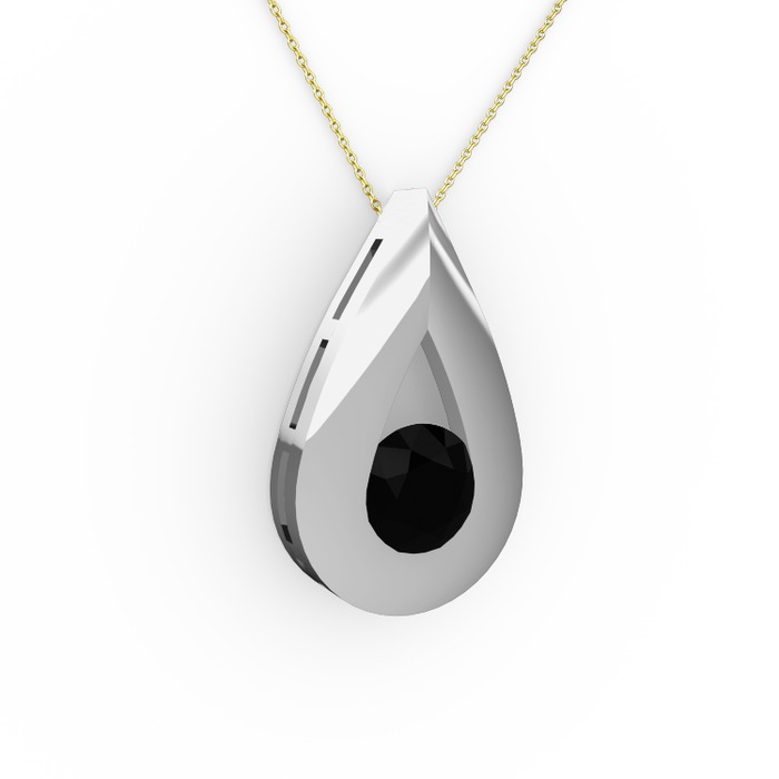 Siyah zirkon 14 ayar beyaz altın kolye (40 cm altın rolo zincir)